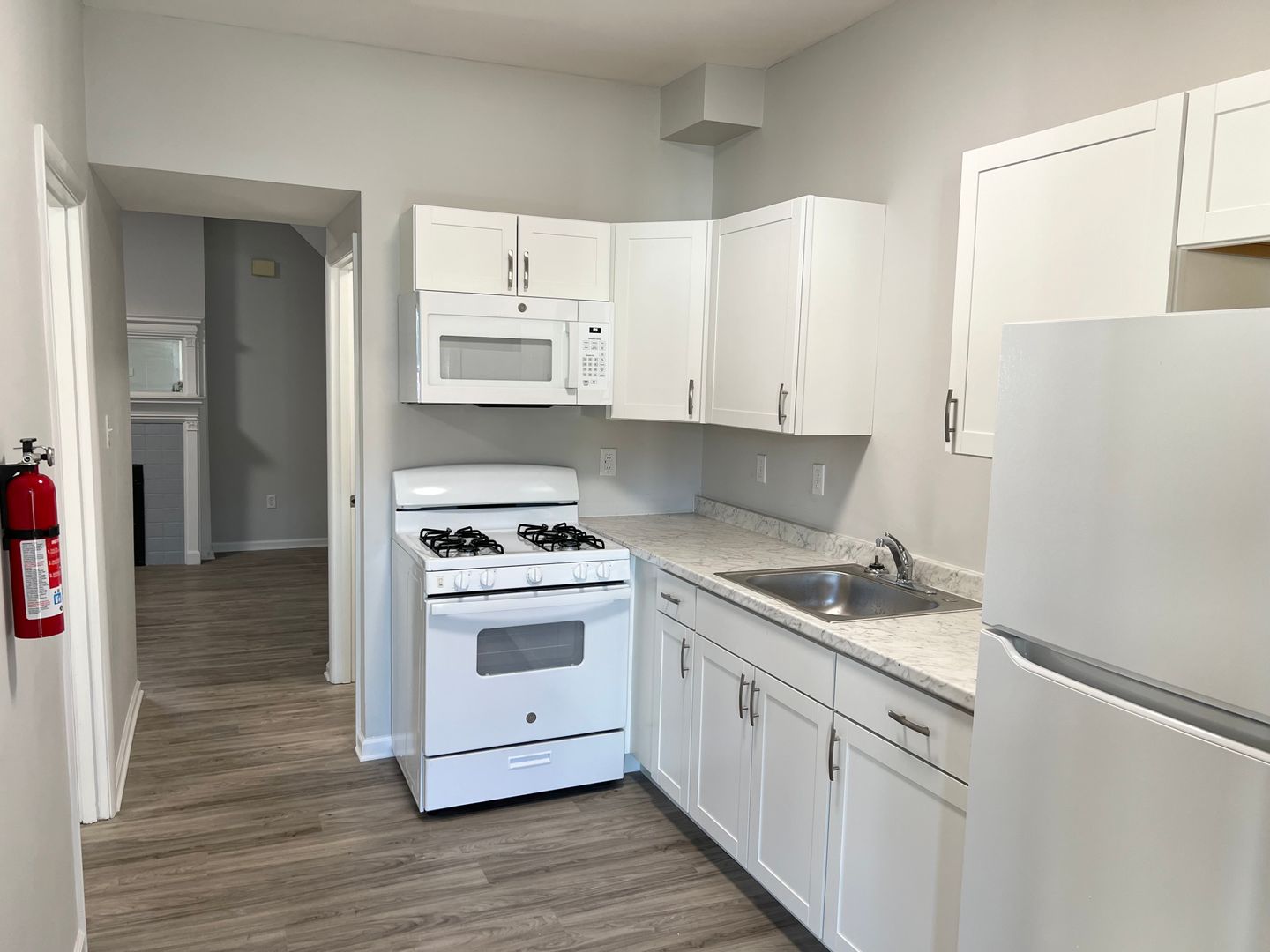 First floor apartment of a duplex. Fully updated with new beautiful kitchen, bath, and luxury vinyl plank flooring throughout.